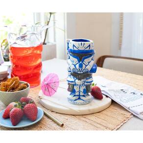- STAR WARS GOES TIKI: O Capitão Rex está aqui para fornecer um suporte refrescante durante o seu dia com esta caneca Geeki Tikis inspirada em Star Wars. Sacie sua sede de bebidas fora deste mundo com o líder clone trooper ao seu lado.