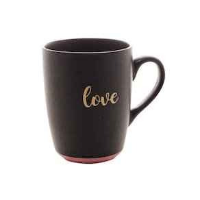 A caneca Love 340ml, elaborada em cerâmica veio para dar toda modernidade que sua mesa merece. Sua cor preto matt e detalhes em rosa trazem sofisticação para sua mesa, deixando suas recepções mais alegres e elegantes. Você vai amar!