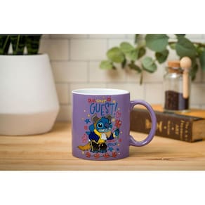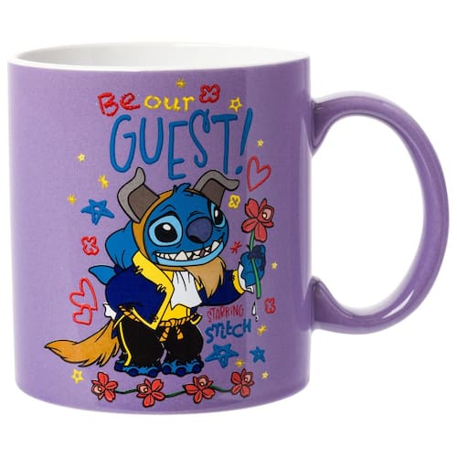 - Adorável traje de monstro de ponto: adorável caneca de cerâmica com Stitch, de Lilo e Stitch, em sua fantasia icônica de Fera, adicionando um toque de charme havaiano à sua rotina matinal ou prateleira de colecionador. Como uma homenagem à Bela e a Fera, tem as famosas palavras "Be Our Guest", exibidas.
