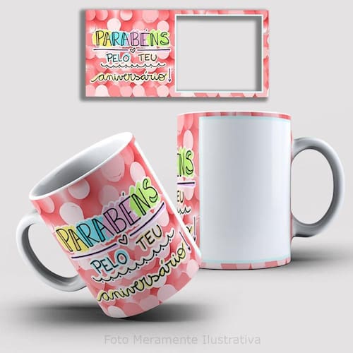 - 1 Caneca de Porcelana 325ml Personalizada Decorada Feliz Aniversário