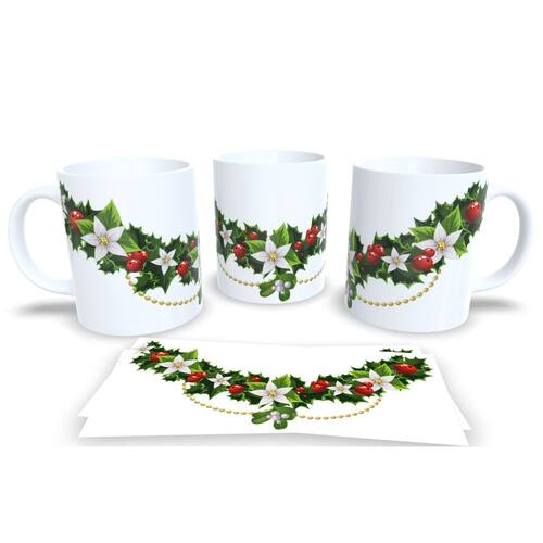 Caneca personalizada de porcelana de alto brilho, com alça e interior branca Coleção Natal.