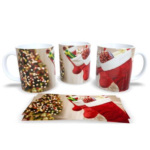 Caneca personalizada de porcelana de alto brilho, com alça e interior branca Coleção Natal.