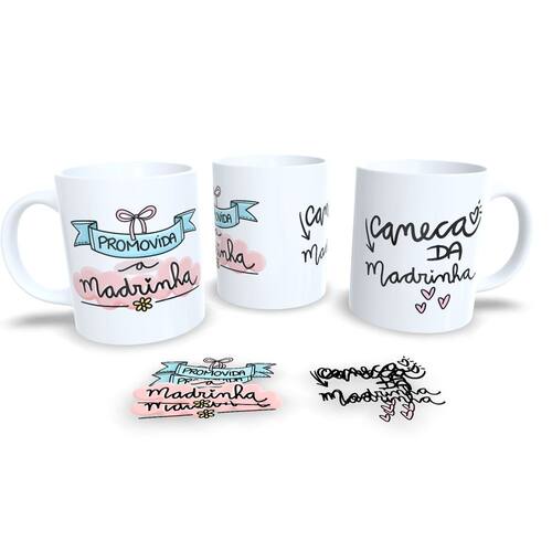 Caneca de Porcelana Branca Personalizada Coleção Dindo e Dinda