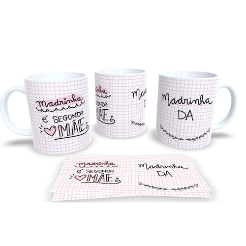 Caneca personalizada de porcelana de alto brilho, com interior e Alça Branca Coleção dindo e dinda.