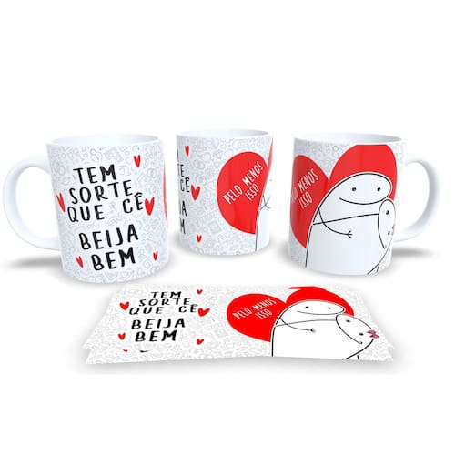Caneca de Porcelana Branca Personalizada Coleção Flork dia dos Namorados