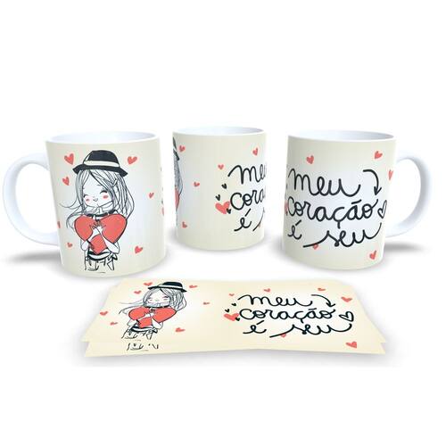 Caneca personalizada de porcelana de alto brilho, com interior e Alça Branca Coleção Flork Namorados.