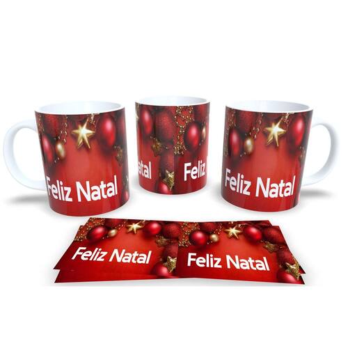 Caneca personalizada de porcelana de alto brilho, com alça e interior branca Coleção NATAL.