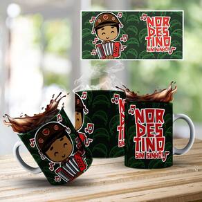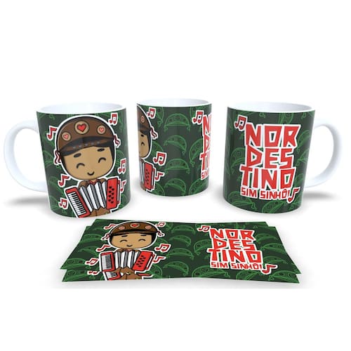Caneca personalizada de porcelana de alto brilho, com alça e interior branca Coleção Nordestino.