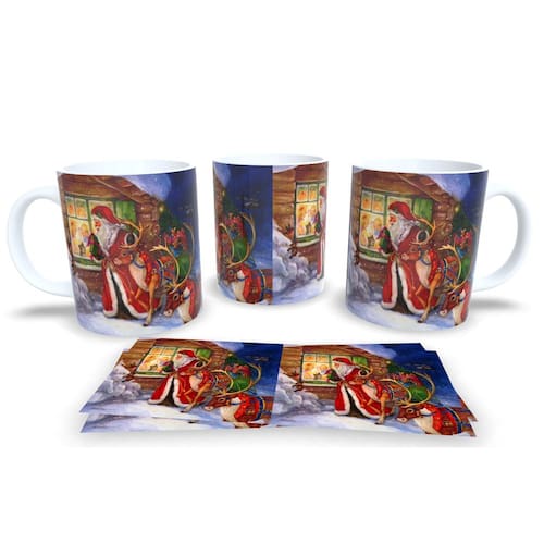Caneca de Porcelana Branca Personalizada Natalina Papai Noel
