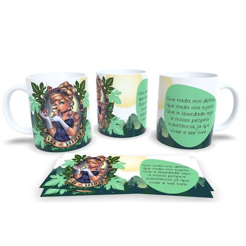 Caneca personalizada de porcelana de alto brilho, com alça e interior branca Coleção Princesas Empoderadas.