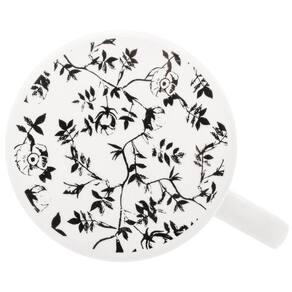 - Caneca branca com estampa de flores na cor preta.