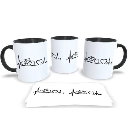 Caneca personalizada de porcelana de alto brilho, com interior e Alça PretaColeção Ciclismo.