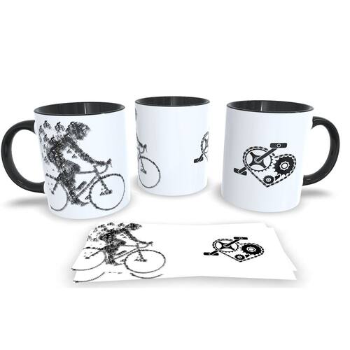 Caneca personalizada de porcelana de alto brilho, com interior e Alça PretaColeção Ciclismo.