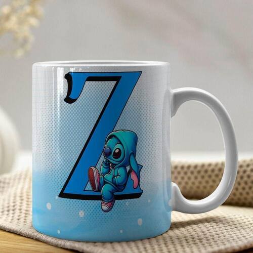 Caneca de Porcelana Personalizada Stitch Letras A-Z 325ml Azul Z -
