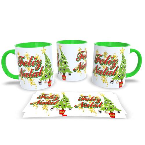Caneca personalizada de porcelana de alto brilho, com alça e interior verde Coleção Natal.