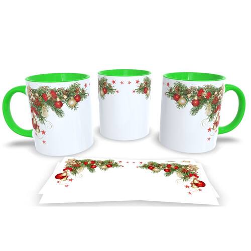Caneca personalizada de porcelana de alto brilho, com alça e interior verde Coleção Natal.