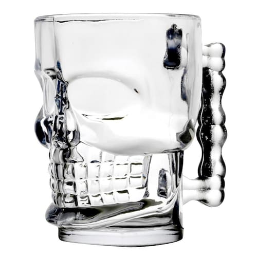 Caneca de vidro caveira - estilo viking rock A caneca de vidro caveira é um produto destinado para quem tem bom gosto e gosta de exclusividade Com um design muito estiloso e de personalidade a caneca de vidro caveira viking está fazendo o maior sucesso entre as vendas para presentes e para quem gosta de tomar aquela cerveja/chopp no fim de semana. Altura: 12,5 cm Largura: 9,5 cm Capacidade: 510 ml Material: vidro boa espessura resistente Marca: Não Informado