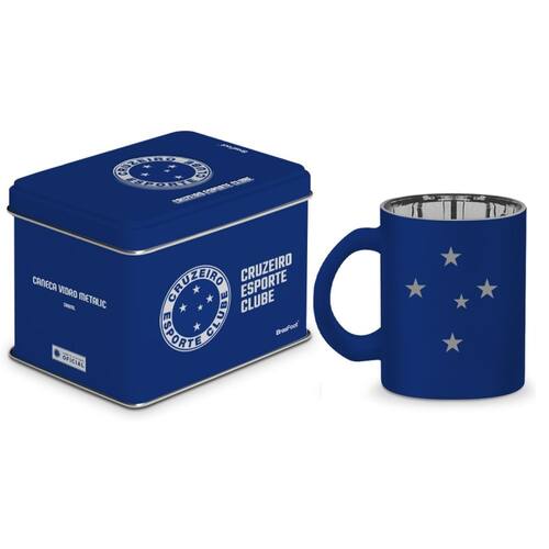 A Caneca de Vidro Diamond Metalic Lata Cruzeiro, da Brasfoot é o presente ideal para o torcedor fiel.