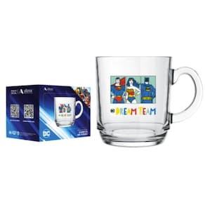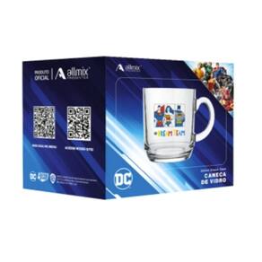 Tema: DC Comics.Personagem: Heroes.Capacidade: 300ml.Material: Vidro.Tamanho do produto: Aproximadamente 10cm.