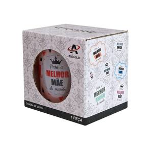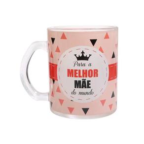 Caneca de vidro transparente com a frase "Para a melhor mãe do mundo".