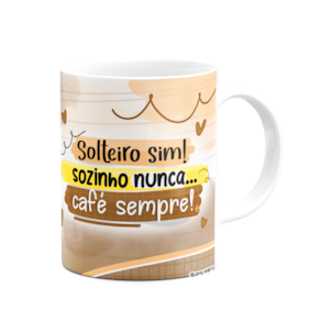 Caneca Divertida - Solteiro sim, sozinho nunca!