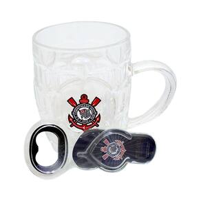 Tome aquela bebida com este conjunto de caneca de vidro com abridor de garrafas. A caneca é customizada com brasão do Timão, estilosa, é ideal para tomar cervejas, mas também ótimo para tomar o cafezinho quente ou outras bebidas. O abridor é em forma de chinelo do seu time do coração, possuindo na parte posterior um ímã para grudar na geladeira. Material caneca: vidro. Material abridor: acrílico. Litragem: 280 mlMarca: MilenoReferencia do fornecedor: G0031Capacidade: 280 mlComposição: VidroDimensões aproximadas do produto (AxLxC): 10 cm x 8 cm x 11,5 cmPeso Aproximado do Produto: 0,305 kgItens Inclusos: 01 Caneca de Vidro do Corinthians e 01 Chaveiro Abridor de Garrafas do CorinthiansA cor da imagem pode apresentar distorção da cor do produto por se tratar de imagem