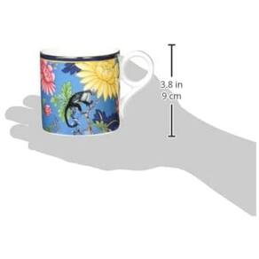Admire o Rhesus Macaque nesta elegante caneca da coleção Wonderlust Sapphire Garden, inspirada nos templos de Kathmandu. Com uma deslumbrante impressão em azul e dourado, esta caneca é feita de porcelana fina e apresenta um cabo delicado, que complementa a beleza das flores retratadas no design.