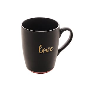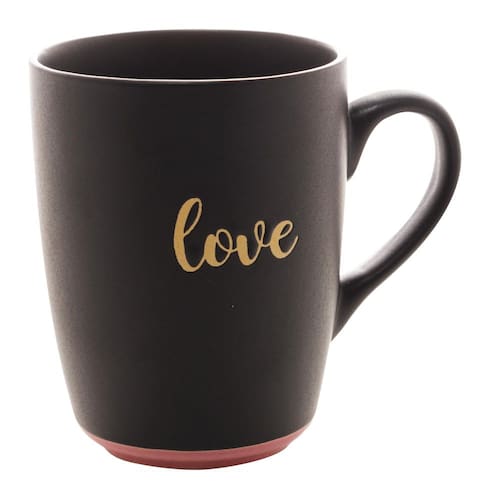 Caneca Em Cerâmica Bon Gourmet Love Preto E Rosa 340ml