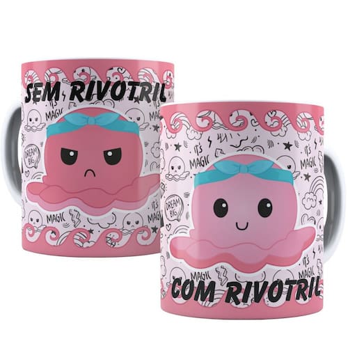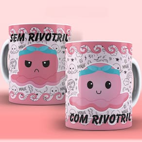 Caneca personalizada de porcelana de alto brilho, com alça e interior branca Coleção Polvo do Humor.