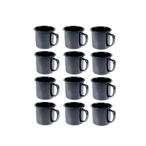 Caneca Esmaltada Retro 150Ml Preta Vintage Jogo 36 Pcs