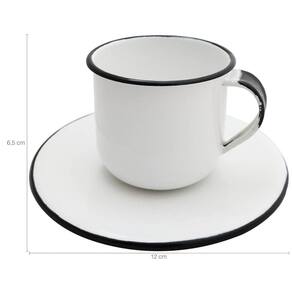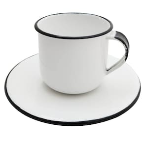 Caneca Esmaltada Xícara Com Pires Para Chá Café 180ml Branco