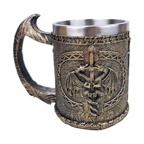 Caneca Espada 2 Dragões de Resina Essa caneca irada vai deixar suas manhãs mais épicas Com um design de dois dragões feito de resina, essa caneca cinza com detalhes dourados é perfeita para quem gosta de um toque de fantasia no dia a dia. Ideal para aquele cafezinho ou chá, vai dar um toque único à sua rotina. Não é indicado para micro-ondas nem lava-louças, então é melhor cuidar dela com carinho. Marca Tenda Medieval.