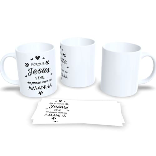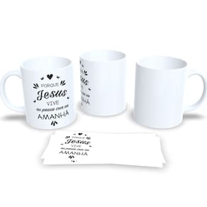 Caneca Evangelica de Porcelana Personalizada Religião Cristã Ele Vive