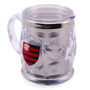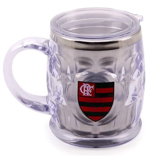 Uma caneca para nação Rubru-negra assistir e torce, ela é feita de plástico translucido com tampa e borda em inox. Uma ótima dica para presentear aquele seu amigo Flamenguista.