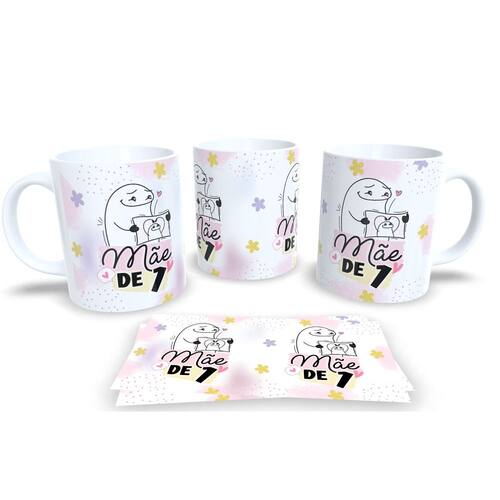 Caneca de porcelana de alto brilho, com alça e interior branca Coleção Flork dia das Mães.