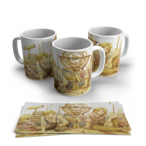 Caneca Fullmetal Alchemist Se você é fã de Fullmetal Alchemist, a obra máxima de Hiromu Arakawa, que conta a saga dos irmãos Elric em busca da lendária Pedra Filosofal, você vai adorar essa caneca de porcelana com o tema do mangá. A caneca tem capacidade para 300 ml e é estampada com imagens dos personagens principais, como Edward, Alphonse, Winry, Roy e Riza. Além disso, a caneca também traz o símbolo da alquimia, a arte que mistura ciência e magia no universo de Fullmetal Alchemist. Essa caneca é ideal para você tomar seu café, chá ou chocolate quente enquanto lê os volumes da Edição Especial de Colecionador do mangá, ou assiste às duas séries em anime que foram um grande sucesso no Japão e no mundo. Aproveite essa oportunidade e garanta já a sua caneca Fullmetal Alchemist. Essa é uma oferta imperdível para os amantes dessa história emocionante e cheia de aventura. Não perca tempo e peça já a sua!