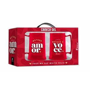 Celebre o amor e presenteie seu amado ou amada com a divertida e irreverente caneca gel 300ml com 2un - metade de mim é você.