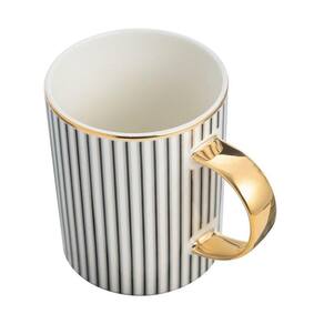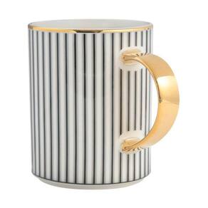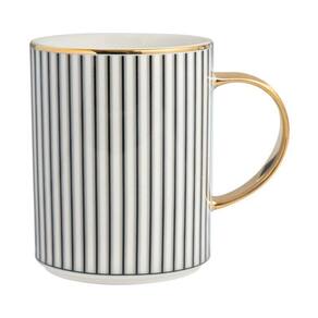 A caneca Jazz conta com capacidade de 350 ml, é produzida em porcelana com shape alongado, listras azuis verticais, filete dourado na borda e na alça. Canecas são itens que estão inseridos em nosso dia, seja para servir um saboroso café a qualquer hora, um chocolate quente em dias mais frios ou um chá para relaxar e aquecer.