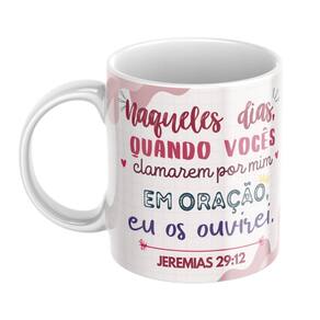 Caneca Personalizada Jeremias 29:12 - Porcelana 325 ml Naqueles dias Quando vocês clamarem por mim em oração eu os ouvirei jeremias 29:12 Uma lembrança diária da força da oração. Esta caneca foi criada para inspirar momentos de conversa com Deus e fortalecer sua fé a cada gole. Ideal para começar o dia em paz, renovar a esperança ou presentear alguém especial com uma mensagem poderosa da Palavra. Feita em porcelana branca de alta qualidade, sua estampa é aplicada por sublimação direta - com cores vivas, durabilidade e acabamento impecável sem adesivo . Destaques: Estampa dos dois lados com o versículo Jeremias 29:12 Pode ir ao micro-ondas e lava-louças Ideal para bebidas quentes ou frias Qualidade premium AAA+ Especificações: Altura: 9,5 cm Diâmetro: 8 cm Capacidade: 325 ml Material: Porcelana branca Transforme sua rotina com uma caneca que carrega mais do que café: carrega fé, oração e a certeza de que Deus ouve. Marca: Não Informado Ean: 7894917101041