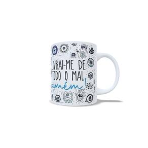 Caneca livrai me de todo mal amém personalizada de porcelana Atenção esse anúncio é referente a apenas uma caneca, as imagens são de vários ângulos.