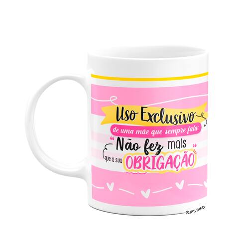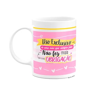 Informações adicionais: A sua caneca pode ser utilizada em Microondas e pode ser lavada na Maquina de Lava - louças normalmente.