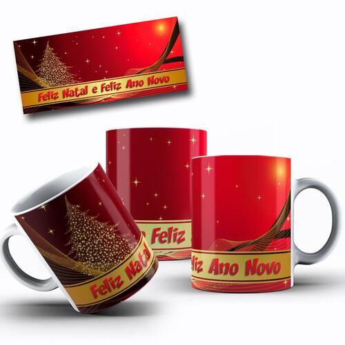 Caneca de porcelana de alto brilho, com alça e interior branca Coleção Natal.