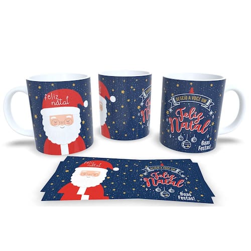 Caneca Natalina de Porcelana Branca Personalizada Natal Papai Noel