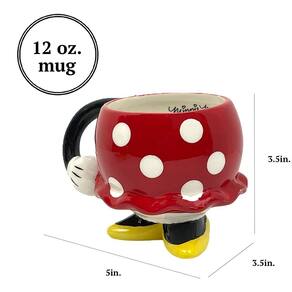 - Caneca Minnie Mouse – Esculpida para parecer a icônica saia de bolinhas vermelhas e brancas da Minnie, ela tem seus sapatos amarelos atuando como um suporte e sua mão enluvada no quadril como a alça.