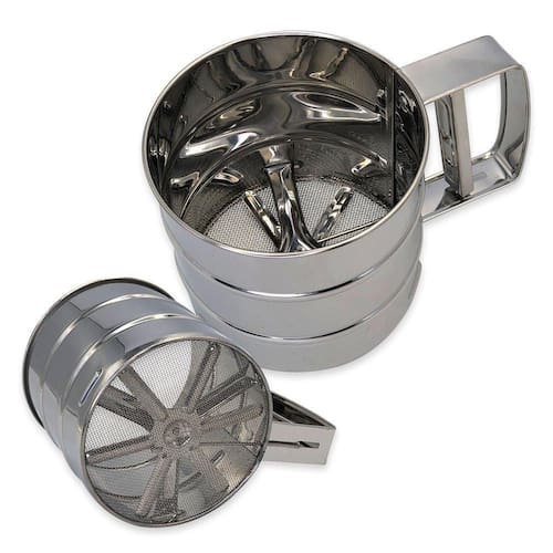 Com seu design em formato de caneca, a peneira polvilhadora é prática e fácil de usar. Basta apertar o gatilho e movimentar para peneirar açúcar, polvilho, farinha, canela, chocolate e outros alimentos em pó.