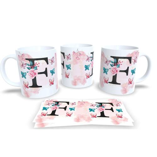 Caneca de porcelana de alto brilho, com alça e interior branca Coleção Alfabeto Iniciais Nomes.
