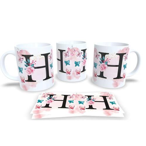 Caneca de porcelana de alto brilho, com alça e interior branca Coleção Alfabeto Iniciais Nomes.