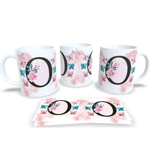 Caneca de porcelana de alto brilho, com alça e interior branca Coleção Alfabeto Iniciais Nomes.