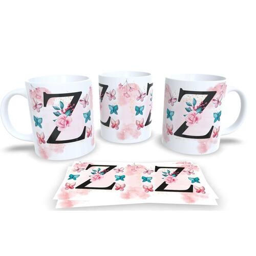 Caneca de porcelana de alto brilho, com alça e interior branca Coleção Alfabeto Iniciais Nomes.