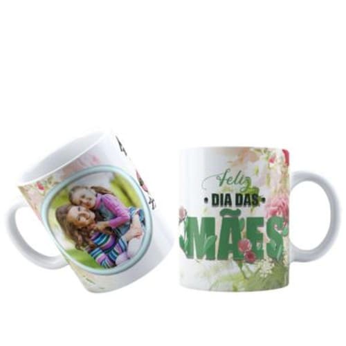 Caneca personalizada de porcelana de alto brilho, com interior e alça branca com linda Estampa do dia das Mães.